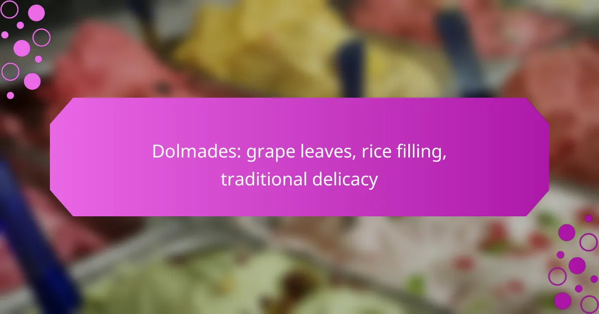 The main ingredients for dolmades include fresh grape leaves, rice, onions, and a variety of herbs such as dill and parsley. You may also add ground meat for a heartier filling, along with olive oil, lemon juice, and spices for flavor.