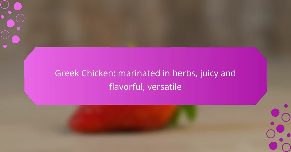 The best marinades for Greek chicken enhance its flavor and tenderness, typically featuring a blend of herbs, citrus, and yogurt. These marinades not only infuse the chicken with a rich taste but also help keep it juicy during cooking.