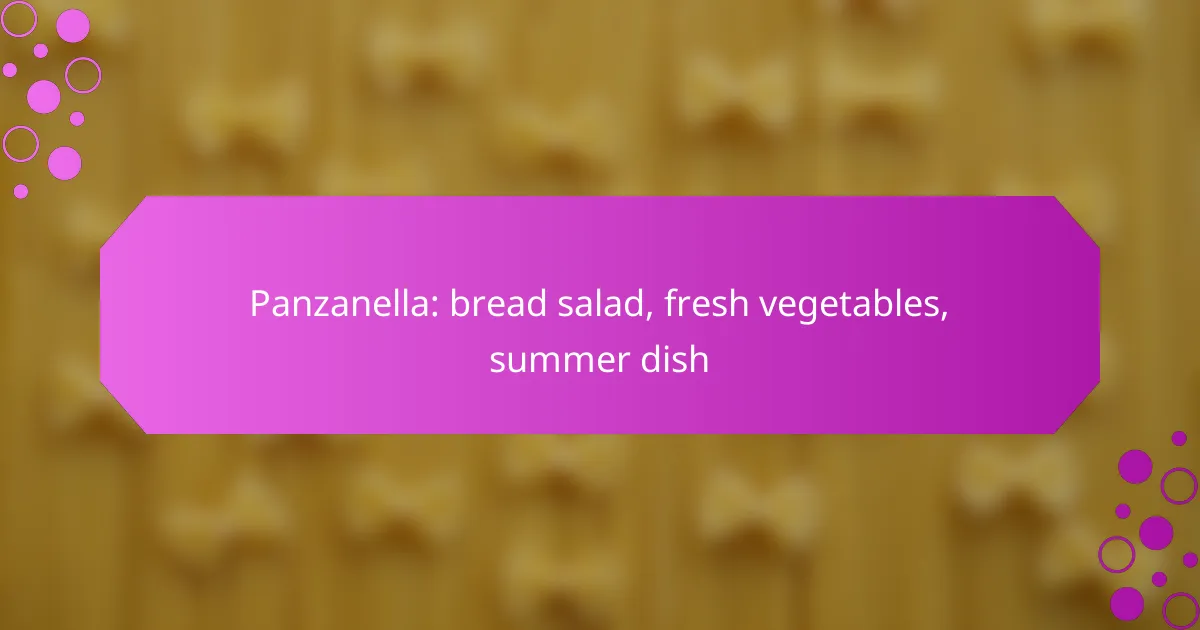 Panzanella is a traditional Italian bread salad that combines stale bread with fresh vegetables, typically enjoyed in the summer. To make a delicious Panzanella, focus on using ripe tomatoes, quality bread, and a simple dressing of olive oil and vinegar.